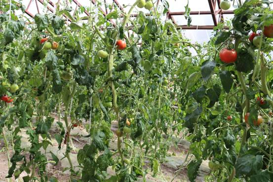 古蓮河露天煤礦溫室大棚里一串串紅彤彤的番茄(李云田 攝)