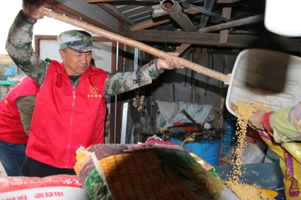 接著大家又來(lái)到明桂琴和程少和老人家中。在明桂琴老人家中,黨員同志們一走進(jìn)院子,正趕上老人家中的糧食沒(méi)有碼放好灑了一地,大家立刻七手八腳的把糧食收好裝入袋中。在隨后的座談慰問(wèn)中,老人回想起這些年工作隊(duì)的同志們對(duì)自己的熱心幫扶,感動(dòng)得熱淚盈眶。