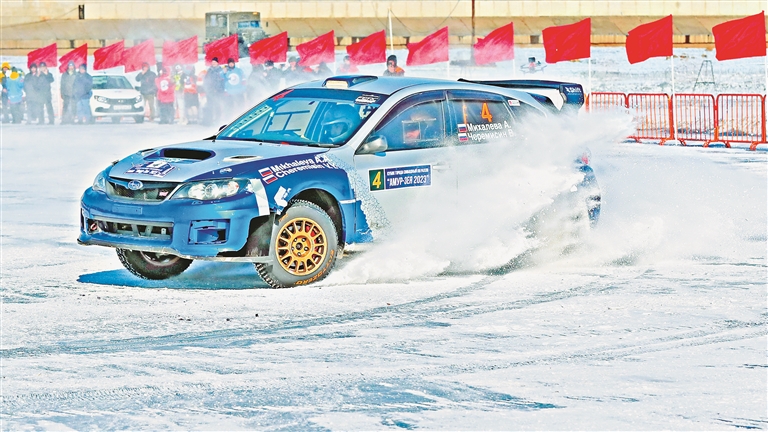 本次比賽地點設在中俄界江黑龍江江面上。比賽設置大排量和小排量兩個組別,進行資格賽和決賽的比拼,雙方各派出20輛汽車參賽。比賽采用電子計時和機械計時兩種方式,參賽選手分別在周長1.5公里的A型場地和3.8公里的B型場地上駕車行駛,兩次用時之和為最終比賽成績,用時最短者勝出?,F(xiàn)場500多名中俄觀眾共賞這場冰雪汽車挑戰(zhàn)盛宴。