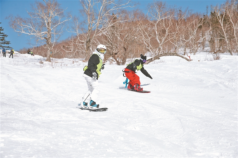隨著一聲令下,來(lái)自哈爾濱的白華、杭州的張寒麒兩名女子單板滑雪選手一躍而起,風(fēng)馳電掣沖向終點(diǎn)。“我非常喜歡雪鄉(xiāng),尤其是有粉雪的時(shí)候特別美,我希望每年能來(lái)三次,更希望能夠參加下一次野雪追逐賽。”第二次來(lái)到雪鄉(xiāng)滑雪的杭州女孩張寒麒深深地被雪鄉(xiāng)吸引。