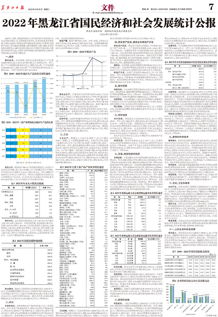 2022年黑龍江省國民經(jīng)濟(jì)和社會發(fā)展統(tǒng)計(jì)公報(bào)
