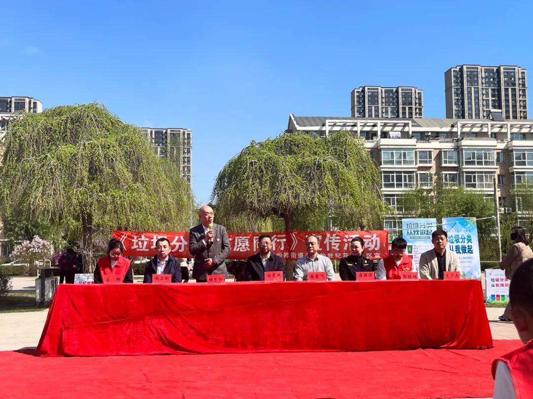 活動(dòng)開場(chǎng),松北區(qū)松祥街道辦事處世紀(jì)花園社區(qū)王少杰書記作了表態(tài)發(fā)言,作為垃圾分類監(jiān)督員、推廣員,要履行好自己的職責(zé),做好垃圾分類工作。通過公益活動(dòng)宣傳,要把垃圾分好類,為環(huán)境保護(hù)做出自己的貢獻(xiàn)。同時(shí)也呼吁各位居民朋友自覺分類投放垃圾,共同為社區(qū)的環(huán)境貢獻(xiàn)自己的一份力量。