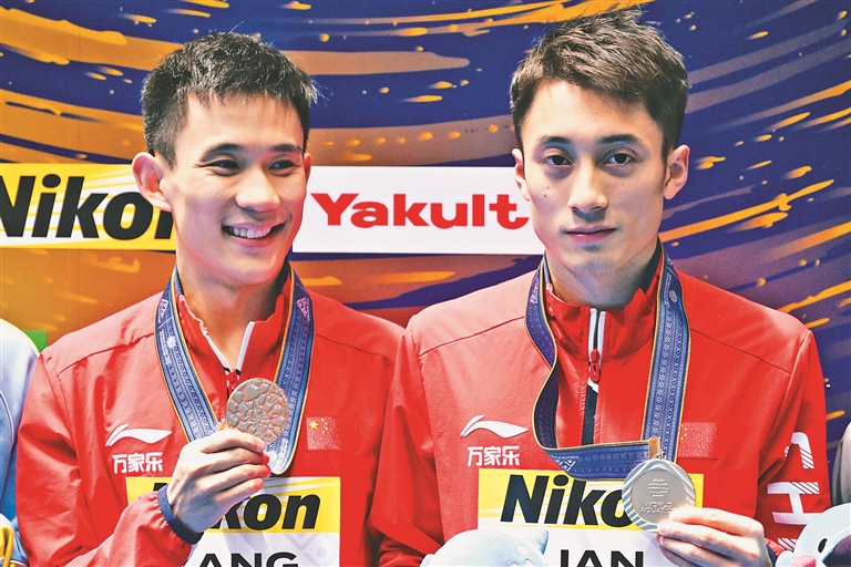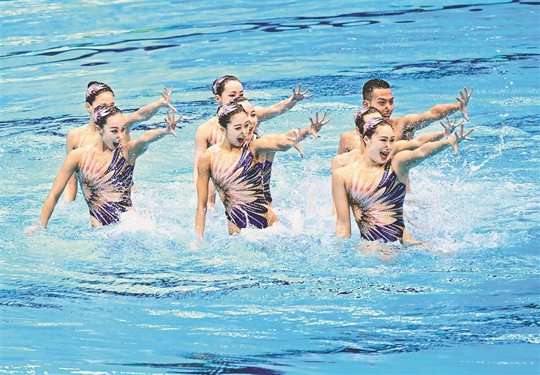 7月17日,在日本福岡舉行的2023年福岡世界游泳錦標(biāo)賽上,花樣游泳集體技巧自選決賽中,中國(guó)隊(duì)以238.0033分的成績(jī)獲得冠軍;在跳水女子雙人3米板決賽中,中國(guó)組合陳藝文/昌雅妮以341.94分的總成績(jī)奪得冠軍;跳水男子雙人10米臺(tái)決賽中,中國(guó)選手楊昊/練俊杰以477.75分的成績(jī)奪得冠軍。