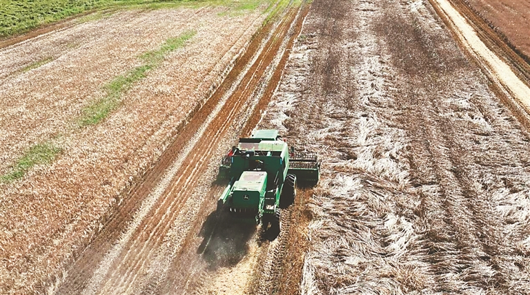 愛輝區(qū)地處中高緯度,四季分明,雨熱同季,降水適量,小麥生育期間光照長(zhǎng),晝夜溫差大,有利于小麥通過春化階段與光照階段健壯生長(zhǎng),同時(shí),有機(jī)質(zhì)含量達(dá)到5%以上的土壤成分,為小麥的優(yōu)質(zhì)高產(chǎn)奠定了基礎(chǔ)。預(yù)計(jì)愛輝區(qū)今年小麥機(jī)收作業(yè),將在3天之內(nèi)全部完成。