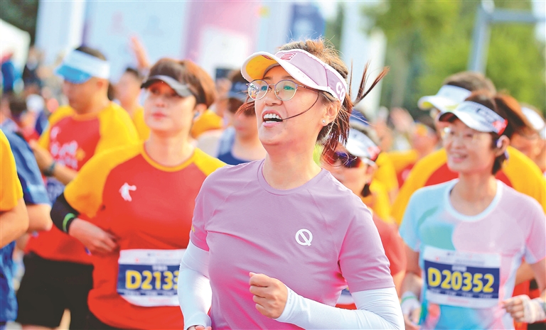 記者看到,參賽的人群滿載著活力與激情,逐漸拉長,不停拓展。賽道上,人潮滾滾向前,一張張笑臉、一聲聲吶喊、一個(gè)個(gè)難忘的鏡頭,為這場馬拉松定格了最美的印記。