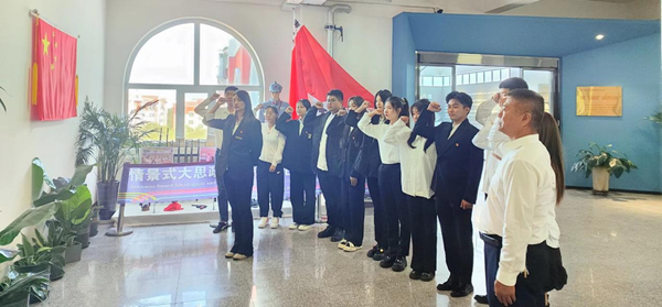 在課程結(jié)束之際,少先隊員發(fā)出了“勿忘國恥 吾輩自強”的錚錚誓言;黑龍江外國語學(xué)院藝術(shù)系輔導(dǎo)員張博雅帶領(lǐng)在場全體黨員重溫了入黨誓詞。短短的十二句話,道出了中國共產(chǎn)黨的百年奮斗歷程,凝聚著每一名黨員不忘初心、堅守理想的信念與力量。面對黨旗,全體黨員莊嚴(yán)地舉起右拳宣誓,表達(dá)了矢志不渝跟黨走的決心和勇?lián)姑?、不?fù)黨恩的堅定信念。