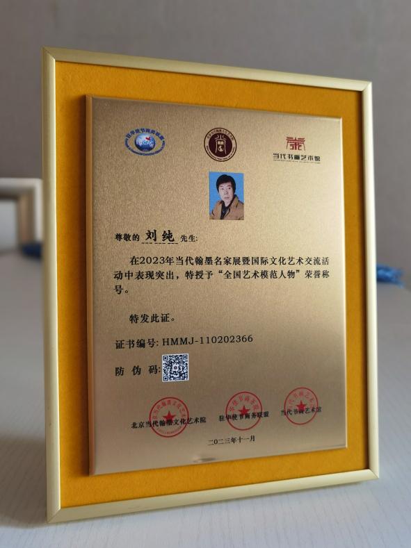黑龍江經(jīng)濟網(wǎng)訊(記者王振紅 文/攝)日前,由北京當代翰墨文化藝術(shù)院主辦的全國第五屆當代翰墨名家展頒獎盛典在北京圓滿結(jié)束。應(yīng)巴基斯坦駐華大使館邀請,與會藝術(shù)家參加了中巴文化藝術(shù)交流并贈送書畫作品。龍江著名美術(shù)家劉純獲大賽一等獎,被主辦單位與駐華使節(jié)商務(wù)聯(lián)盟(ECCAC)共同授予“全國藝術(shù)模范人物”榮譽稱號和中外國際文化交流大使。