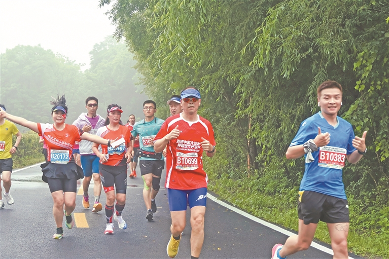 隨著發(fā)令槍響,7380名選手陸續(xù)沖出起跑線,從老山門出發(fā),途經(jīng)神龜石、月牙湖、長(zhǎng)壽泉、丞相峰,遠(yuǎn)眺南極仙翁,沿途領(lǐng)略北國(guó)森林的壯美風(fēng)光,碧樹藍(lán)天相映成趣,盡顯生態(tài)魅力。賽道上,有沖鋒在前的資深跑者,有不甘落后的新人跑者,更有“以跑為樂”運(yùn)動(dòng)團(tuán)體,以鏗鏘步履跑出一道道靚麗風(fēng)景線。