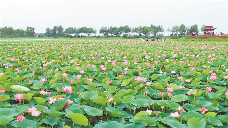 走進(jìn)位于北林區(qū)雙河鎮(zhèn)西南村的正大稻田公園,荷花映日,稻始抽穗,田間不時(shí)有陣陣蛙鳴。藍(lán)天白云之下,綠浪翻滾,游人漫步其間交談著觀光感受,一幅寧?kù)o安適的鄉(xiāng)村田園畫(huà)卷徐徐展開(kāi)?!霸陂e暇的時(shí)候來(lái)到這里散散步,感受戶外樂(lè)趣和田園風(fēng)景,感覺(jué)身心都很放松、很快樂(lè)?!庇慰挖w忠塔說(shuō)。