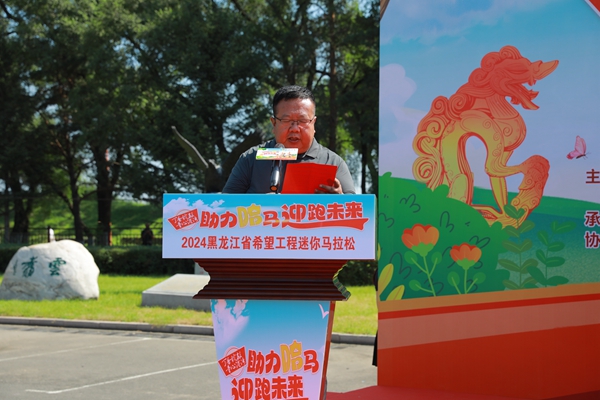 黑龍江經(jīng)濟(jì)網(wǎng)訊(王丹陽)為助力哈爾濱銀行2024哈爾濱馬拉松活動(dòng),增強(qiáng)“丁香綻放·童心港灣”項(xiàng)目凝聚力,提升兒童身體素質(zhì)和健康意識(shí),更好地感受運(yùn)動(dòng)的魅力,提高兒童對(duì)馬拉松運(yùn)動(dòng)的了解、認(rèn)識(shí)和興趣,讓兒童培養(yǎng)積極樂觀的生活態(tài)度,樹立頑強(qiáng)拼搏的意志品格,8月9日,“丁香綻放·童心港灣”“助力哈馬 迎跑未來”2024黑龍江省希望工程迷你馬拉松活動(dòng)在哈爾濱市阿城區(qū)金上京歷史博物館拉開帷幕。共青團(tuán)黑龍江省委副書記張濤,哈爾濱銀行黨委專職副書記張玉峰,中共哈爾濱市阿城區(qū)委副書記徐洪濤,黑龍江省青少年發(fā)展基金會(huì)理事長杜晶,共青團(tuán)哈爾濱市委副書記劉婷婷,中共哈爾濱市阿城區(qū)委常委、宣傳部部長周巍巍,哈爾濱市阿城區(qū)人民政府副區(qū)長王殿友及阿城區(qū)團(tuán)委、阿城區(qū)教育局、阿城區(qū)文化體育廣播電視和旅游局相關(guān)領(lǐng)導(dǎo)嘉賓出席活動(dòng),童心港灣留守兒童、少年兒童代表共計(jì)百余人參賽。
