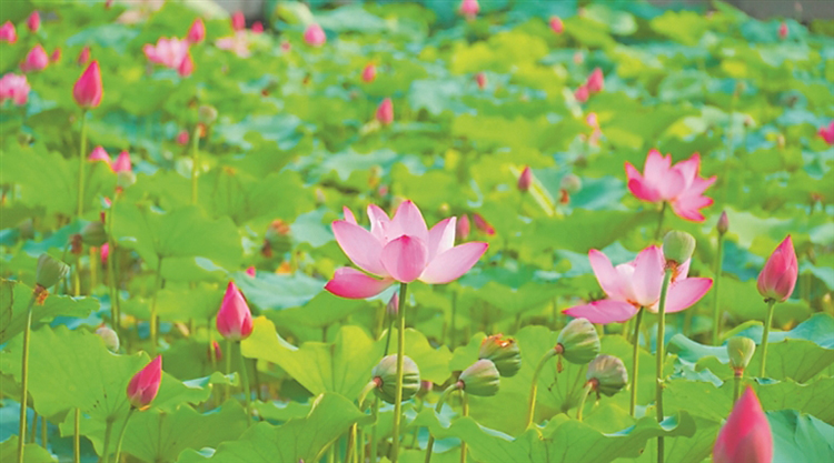 在北大荒集團(tuán)八五九農(nóng)場(chǎng)有限公司灌渠附近,眾人發(fā)現(xiàn)了一片美若仙境的荷花泡,粉色的花朵連成一片,遠(yuǎn)遠(yuǎn)望去燦若朝霞,香味彌漫周?chē)?。荷花池中,綠葉如蓋,朵朵荷花從中脫穎而出,花瓣層層疊疊,錯(cuò)落有致,宛如精心雕琢的藝術(shù)品,每一朵都蘊(yùn)含著大自然的鬼斧神工。