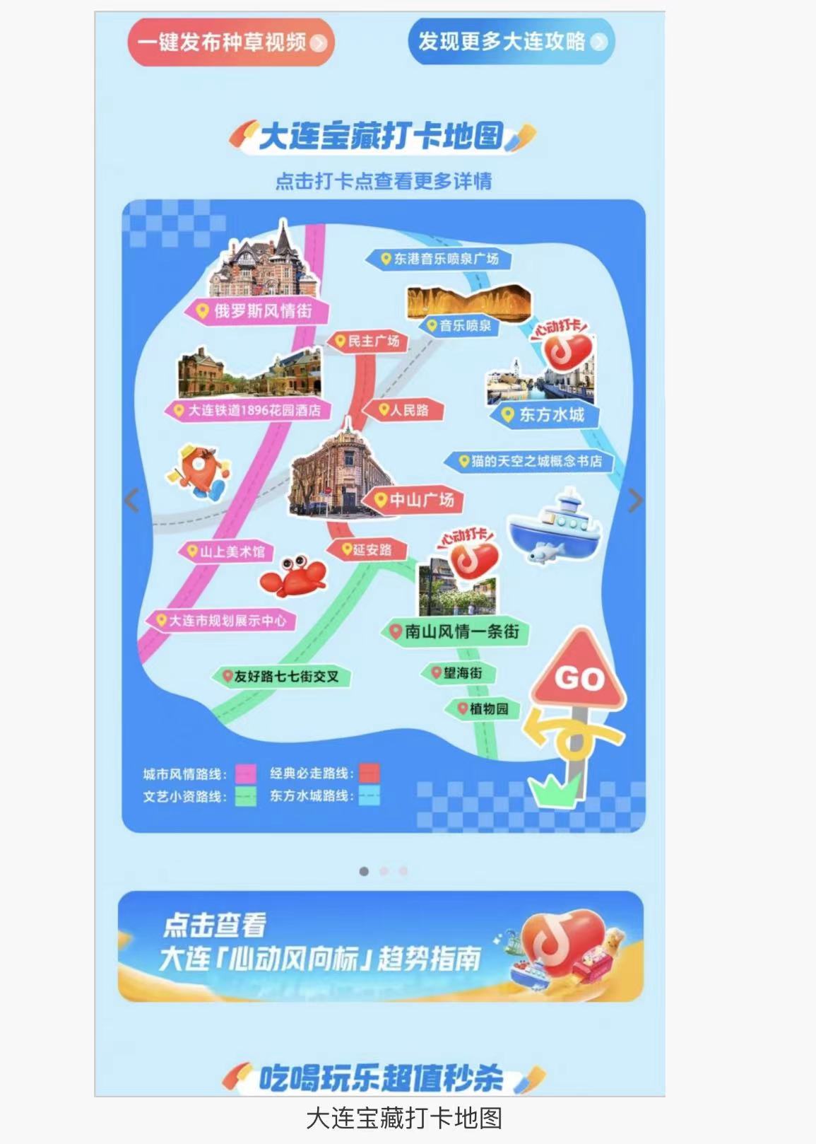 “心動(dòng)大連”活動(dòng)為期30天,線上活動(dòng)8月19日已經(jīng)開始,持續(xù)至9月17日。活動(dòng)期間,抖音生活服務(wù)將聚焦大連夏季、秋季旅游產(chǎn)品,深入挖掘海濱城市差異化亮點(diǎn),通過線上推廣、線下打卡、文旅產(chǎn)品促銷等一系列舉措,提升大連城市品牌影響力,促進(jìn)當(dāng)?shù)匚穆孟M(fèi)。