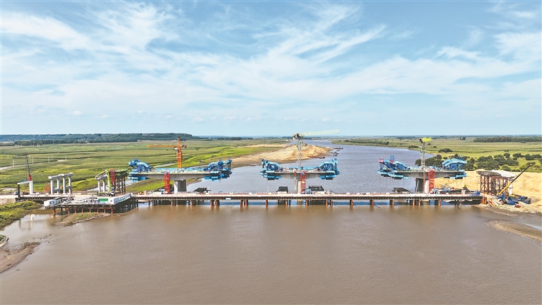 圖為建設(shè)中的呼蘭河特大橋。本報(bào)記者 吳利紅攝