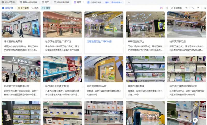 線下巡店工作能最大程度保障各終端貨品銷售質(zhì)量。過去,由于巡店工作涉及外出出差,巡店照片數(shù)據(jù)手機(jī)端無法操作整理匯總,影響問題處理時效且增加無用工作量?,F(xiàn)在敷爾佳運(yùn)用飛書表單移動端操作,隨時上傳巡店結(jié)果及照片,表格儀表盤視角可以查看數(shù)據(jù)并進(jìn)行一段時間內(nèi)的環(huán)比、同比分析,基于數(shù)據(jù)分析做任務(wù)下達(dá),一次巡檢從發(fā)現(xiàn)問題到整改問題的全流程都能包攬,對于每位巡檢員來說,每天至少節(jié)省2.5小時數(shù)據(jù)統(tǒng)計時間,同時更清晰的了解每個督導(dǎo)的外出工作情況 。此外,查貨溯源沒有系統(tǒng)的數(shù)據(jù)存檔,多個渠道數(shù)據(jù)無法同步,無數(shù)個sheet篩選查詢數(shù)據(jù),容易出錯。現(xiàn)在,運(yùn)用多維表格協(xié)同操作,多個維度查看所需數(shù)據(jù),所有查貨情況能被沉淀和實時查看。