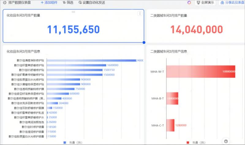 過去,敷爾佳生產(chǎn)計劃專員需制定多個生產(chǎn)車間生產(chǎn)排產(chǎn)計劃、并進(jìn)行生產(chǎn)進(jìn)度跟蹤,針對每個車間相應(yīng)的共享Excel并分別設(shè)置密碼權(quán)限,表格繁多導(dǎo)致操作不便,查詢信息時需要在每個相應(yīng)鏈接點(diǎn)擊并輸入密碼進(jìn)入?,F(xiàn)在通過運(yùn)用飛書的多維表格,公共日歷等功能,生產(chǎn)計劃專員可以更清晰、明了的了解各車間產(chǎn)品排產(chǎn)信息。