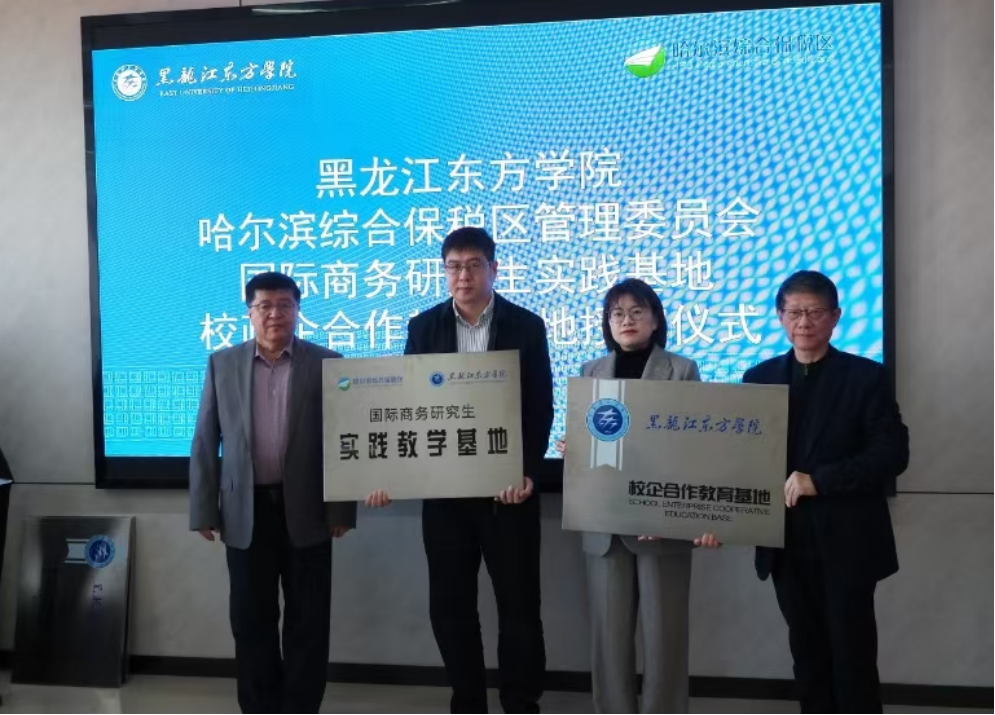 黑龍江經(jīng)濟網(wǎng)訊(記者李凌雪)11月20日,哈爾濱綜合保稅區(qū)與黑龍江東方學(xué)院舉行校政企產(chǎn)教研發(fā)展戰(zhàn)略合作協(xié)議簽約授牌儀式。哈爾濱綜合保稅區(qū)副主任張旭與黑龍江東方學(xué)院副校長程延江共同為國際商務(wù)研究生實踐基地、校企合作教育基地授牌并簽署合作協(xié)議。
