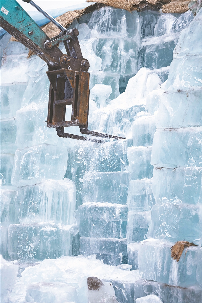 為保證冰建景觀的“高顏值”,這些存冰在啟用后,要先送往驗冰場接受檢查,檢查冰體的厚度、長度、完整度和潔凈度,只有品相好、品質(zhì)佳并符合建筑要求標(biāo)準(zhǔn)的合格冰體,才能進入園區(qū)用于景觀建設(shè)。