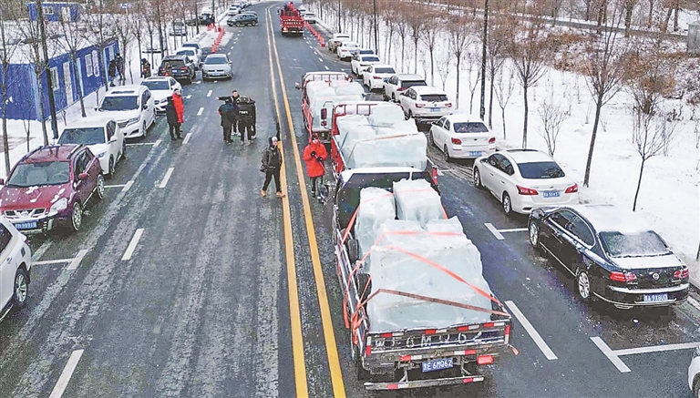 運送存冰。哈爾濱冰雪大世界提供