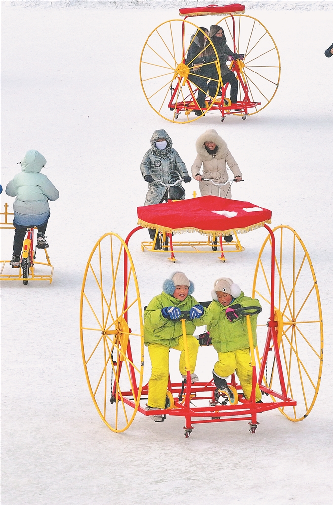 1月29日,大年初一,哈爾濱太陽島雪博會園區(qū),游人如織。孩子們在家長的帶領(lǐng)下,坐雪圈、騎冰上自行車,玩冰戲雪,歡樂融融。省博物館展廳內(nèi),懸掛了紅燈籠、紅條幅,許多市民、游客在參觀學習,打卡拍照,體驗傳統(tǒng)民俗。
