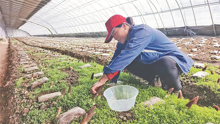 羊肚菌長(zhǎng)勢(shì)喜人。