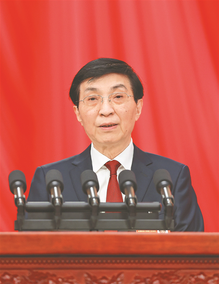 王滬寧代表政協(xié)第十四屆全國委員會(huì)常務(wù)委員會(huì),向大會(huì)報(bào)告工作。