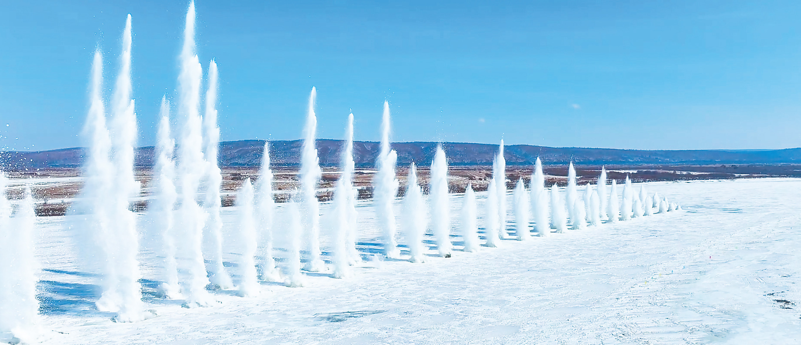 短短幾秒的時間,航標號262到264之間的黑龍江江面上,便瞬間形成了幾十米高的冰霧柱和三公里長的破碎段,場面非常壯觀?!敖?jīng)前期凌汛會商,今春黑龍江上游發(fā)生冰凌卡塞的可能性較大,所以我們決定對黑龍江呼瑪鎮(zhèn)上江島段和鷗浦鄉(xiāng)三合段兩個主要區(qū)域?qū)嵤┤L4800米的主動防凌爆破作業(yè)?!焙衄斂h水務局副局長王軍說。據(jù)悉,鷗浦鄉(xiāng)三合江段1800米的防凌爆破作業(yè)將于2日實施。