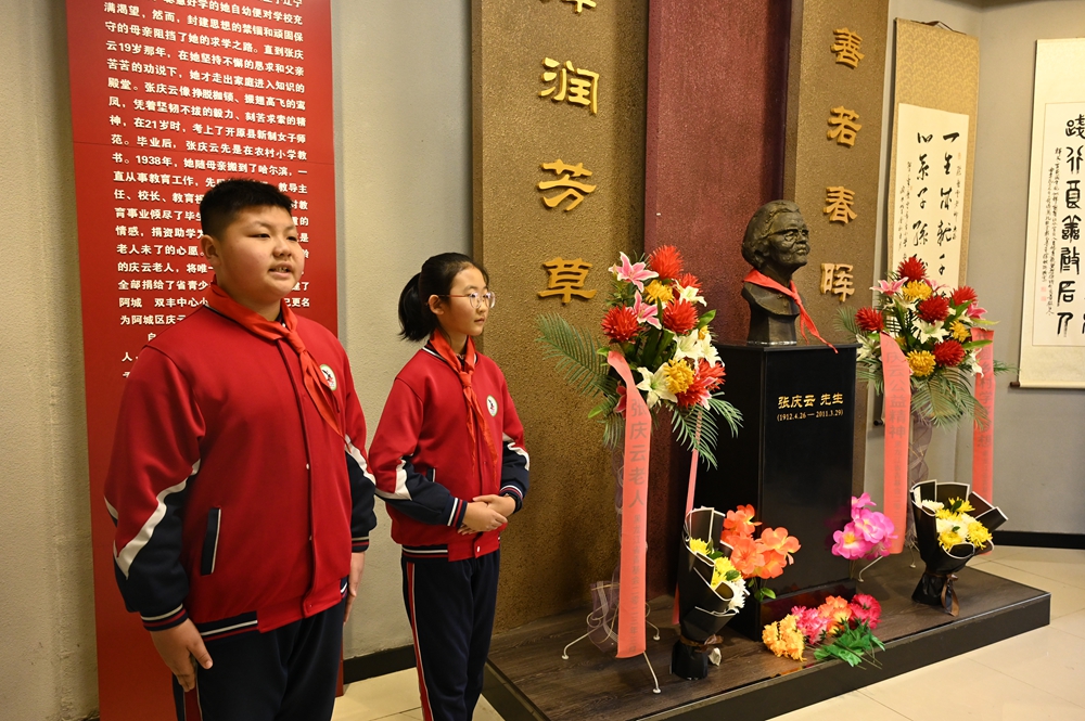 黑龍江經(jīng)濟網(wǎng)訊(王丹陽 記者 祝東)近日,在百歲老人張慶云逝世十四周年之際,“致敬黨員楷模,向張慶云同志學習”主題黨日活動在阿城區(qū)雙豐鎮(zhèn)慶云希望小學開展。團省委機關(guān)、省希望工程捐助中心、哈爾濱市注冊會計師行業(yè)、團阿城區(qū)委、區(qū)教育局等單位黨員代表,以及阿城區(qū)“思政一體化”聯(lián)盟校相關(guān)領(lǐng)導(dǎo)參加了紀念活動。