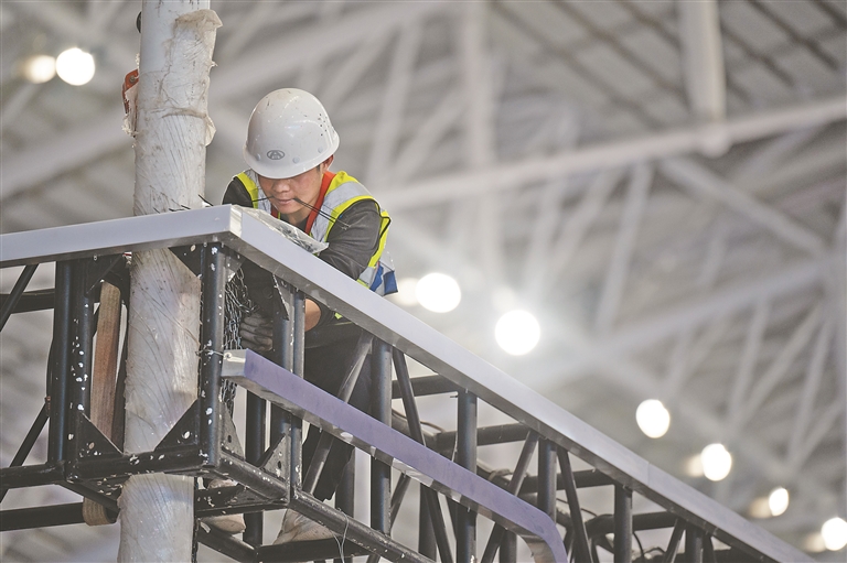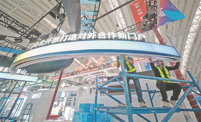 5月14日,距離哈洽會開幕還有三天時間,記者來到第34屆哈洽會展館施工現(xiàn)場,各區(qū)域展臺已搭建成型,施工工人們正在有條不紊地裝飾展區(qū)細(xì)節(jié)部分。