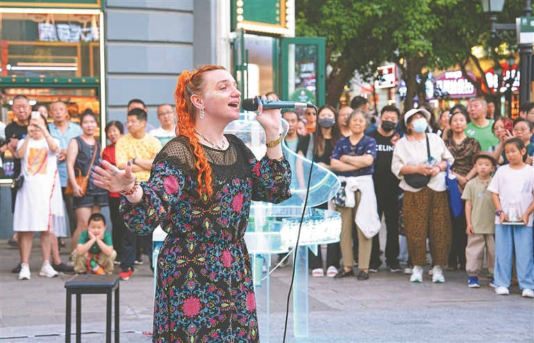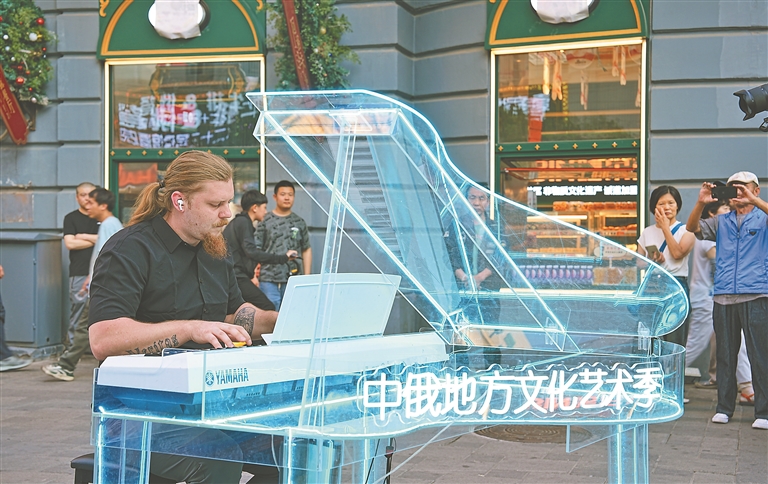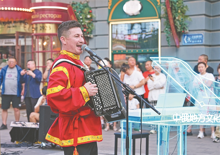 中央大街一隅,熱情洋溢的俄羅斯演員或奏響悠揚的巴揚樂曲,讓充滿異域風(fēng)情的旋律在空氣中流淌;或以靈動的舞姿演繹俄羅斯文化,用熱情奔放的節(jié)奏點燃現(xiàn)場氣氛。市民和游客近距離感受俄羅斯文化的魅力。