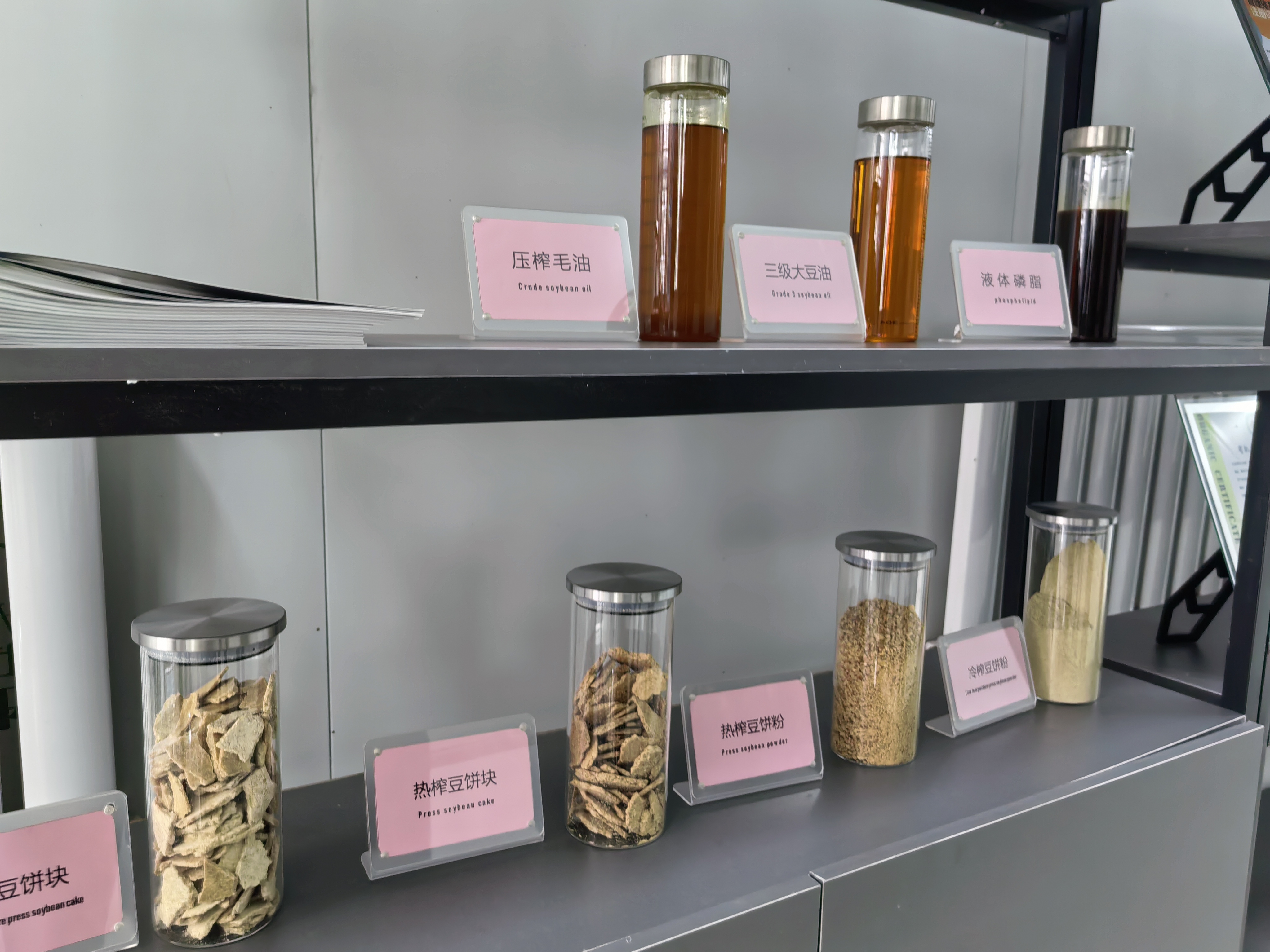 “1斤大豆出油率13%,出餅率84%,望奎縣晨騏農(nóng)業(yè)發(fā)展有限公司主要經(jīng)營非轉(zhuǎn)基因大豆餅粉、食品級大豆餅、非轉(zhuǎn)基因大豆油等非轉(zhuǎn)基因大豆壓榨產(chǎn)品,設(shè)計產(chǎn)能年加工大豆18萬噸?!蔽挥谕h先鋒鎮(zhèn)的晨騏農(nóng)業(yè)是一家集科研、開發(fā)、生產(chǎn)、經(jīng)營為一體的大型現(xiàn)代化綜合性大豆深加工企業(yè),晨騏農(nóng)業(yè)技術(shù)主管楊明向記者介紹即將出口的噸包豆餅粉,“今年從正月初九一直滿負(fù)荷生產(chǎn),目前建設(shè)有食品級、飼料級兩條豆餅生產(chǎn)線?!睆某框U農(nóng)業(yè)的熱榨車間、精煉車間一路走到成品車間,能夠看到大豆的全產(chǎn)業(yè)鏈生產(chǎn)過程。