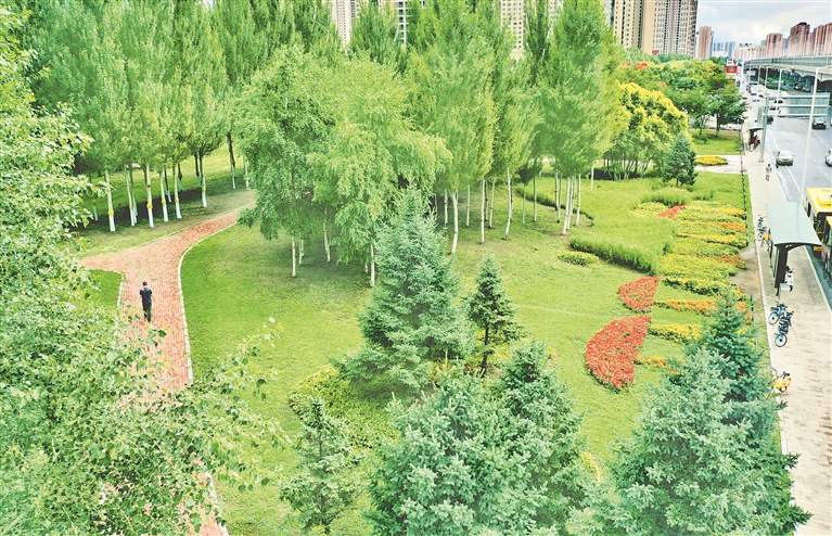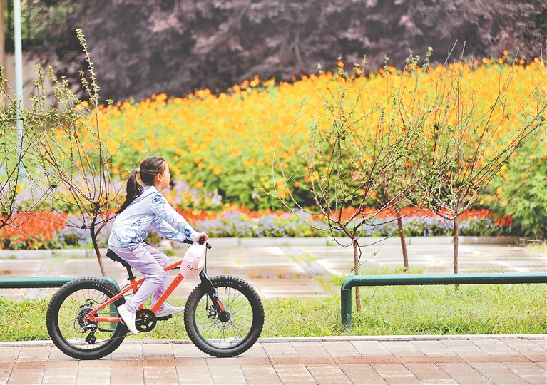 3日,哈爾濱市道里區(qū)陽(yáng)明灘大道附近,行人從“口袋公園”旁走過(guò)。今年,當(dāng)?shù)匦陆硕鄠€(gè)“口袋公園”,占地面積數(shù)萬(wàn)平方米。公園里,樹(shù)木生長(zhǎng)茂盛,鮮花爭(zhēng)奇斗艷,小道從園中穿過(guò),道旁設(shè)有座椅、健身器材等。許多附近居民到這里休閑、賞景。