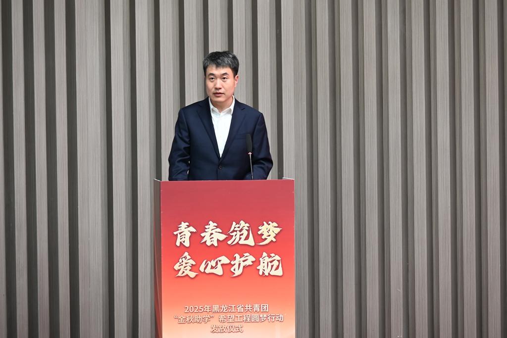 黑龍江經(jīng)濟(jì)網(wǎng)訊(王丹陽(yáng) 于衍行 記者祝東)9月23日,由共青團(tuán)黑龍江省委員會(huì)、黑龍江省青少年發(fā)展基金會(huì)主辦,共青團(tuán)齊齊哈爾市委員會(huì)、齊齊哈爾大學(xué)承辦的2025年黑龍江省共青團(tuán)“金秋助學(xué)”希望工程圓夢(mèng)行動(dòng)發(fā)放儀式在齊齊哈爾大學(xué)成功舉辦。共青團(tuán)黑龍江省委員會(huì)副書記張濤,中共齊齊哈爾市委副書記劉振江,齊齊哈爾大學(xué)黨委副書記張文治,黑龍江省希望工程捐助中心主任杜晶,黑龍江北大倉(cāng)集團(tuán)有限公司黨委書記、總裁隋熙鳳,共青團(tuán)齊齊哈爾市委員會(huì)書記王剛,以及社會(huì)各界愛(ài)心企業(yè)、齊齊哈爾市學(xué)生代表等共計(jì)300余人參加本次活動(dòng)。