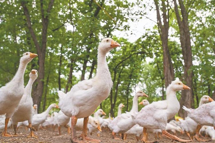 林下養(yǎng)鵝,“森林+”致富路子多。本報記者 唐海兵攝