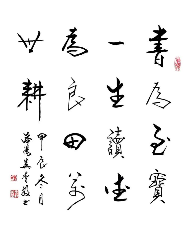游歷四方,自認(rèn)為也讀過為數(shù)不少的書,見過很多人寫的字,總認(rèn)為真正能稱得上書法家的,必是從書寫、書法到書道。能寫的很多,有法就少些,做到書道的就少之又少。書道,乃通過書法實(shí)踐,抒發(fā)和調(diào)節(jié)作者感情,提高個人品德素養(yǎng),探索和理解人生意義之道。余以為,吳會敏先生做到書道了。