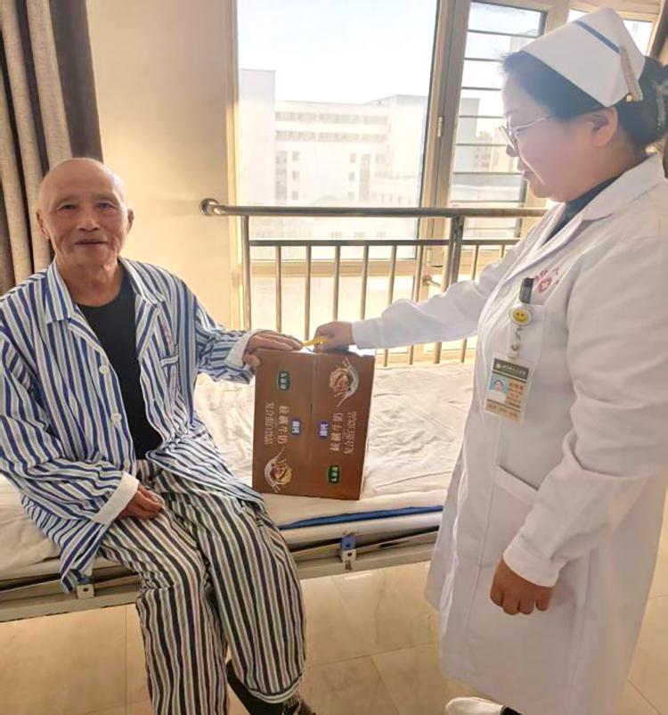 禮品雖小,情意濃重。開展活動期間,醫(yī)護人員們帶著精心準(zhǔn)備的小禮品,走進(jìn)每一位60歲以上老年患者的病房。這些小禮品雖然價格并不昂貴,但卻飽含著對患者的深深祝福。柔軟舒適的保暖襪,為患者在漸冷的霜降時節(jié)增添一份溫暖;營養(yǎng)豐富的滋補品,助力患者增強身體抵抗力;寓意吉祥的平安符,寄托著對患者早日康復(fù)的美好期許。當(dāng)醫(yī)護人員將一份份小禮品送到患者手中時,患者們的臉上都洋溢著驚喜與感動的笑容,紛紛對科室的貼心關(guān)懷表示感謝?;颊邉⒁碳拥卣f:“在這個特殊的節(jié)日里,收到你們送的禮物,心里特別溫暖”。