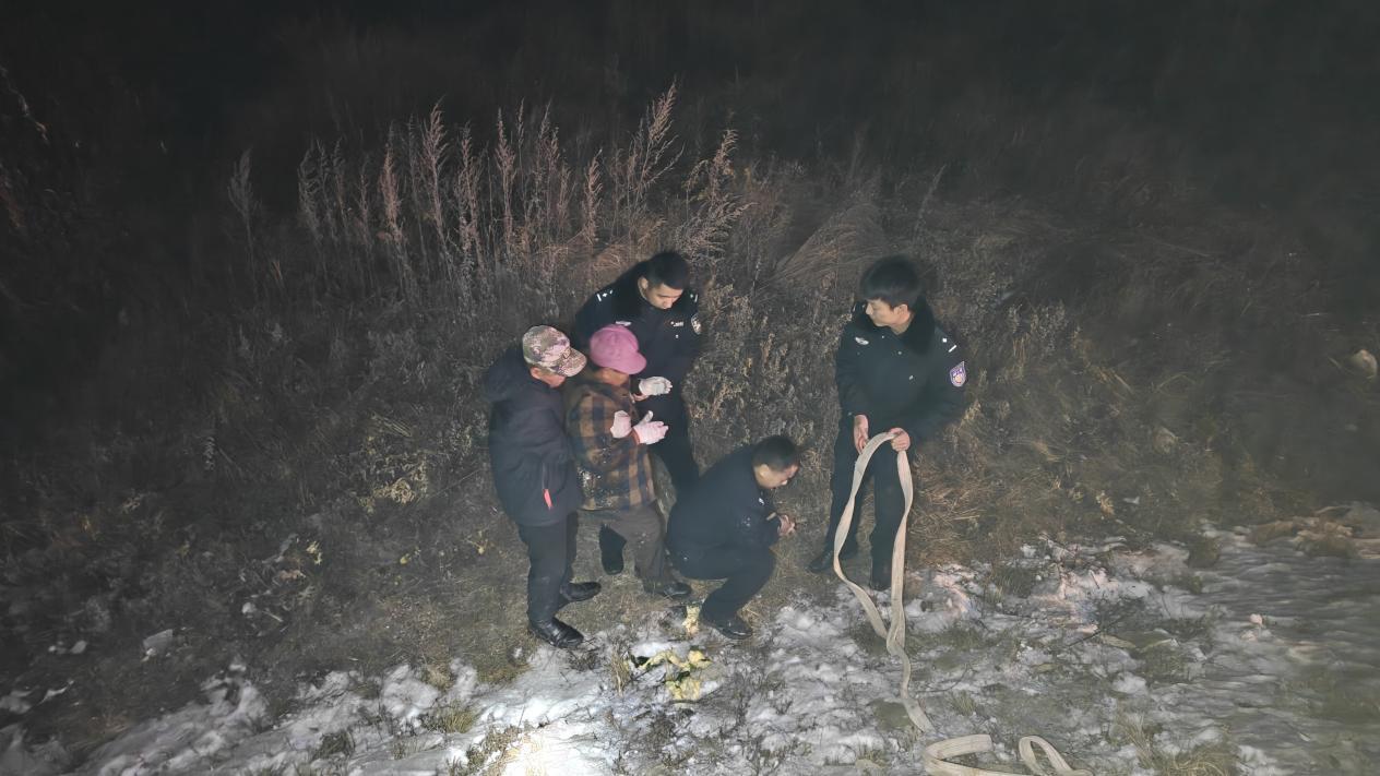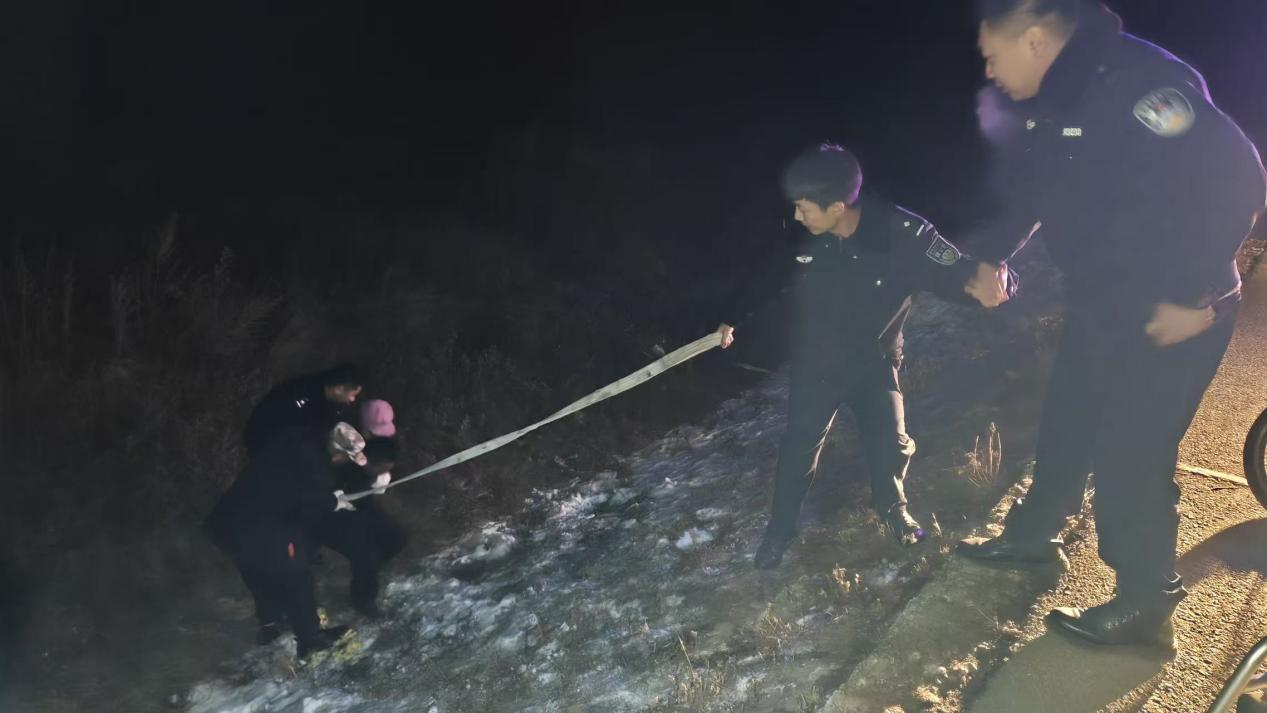 據(jù)了解,當(dāng)時(shí)呼瑪縣公安局興華派出所民輔警正對轄區(qū)開展常態(tài)化巡查,發(fā)現(xiàn)一位群眾在路邊攔住警車,民輔警立即停車查看情況。詢問得知,該群眾的妻子乘坐電動輪椅時(shí)由于天黑路滑不慎駛進(jìn)了深溝,因其妻子年過六旬身體殘疾且行動不便,墜入深溝摔倒后無法起身,恰好此時(shí)看到巡邏的警車,便立刻攔車尋求幫助。