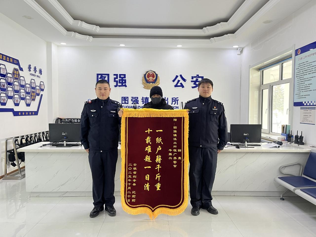 黑龍江經(jīng)濟(jì)網(wǎng)訊(顧蘭)“一紙戶籍千斤重,十載難題一日清”,這面錦旗從南國(guó)水鄉(xiāng)利辛,到北國(guó)邊陲大興安嶺圖強(qiáng)林業(yè)局,跨越了2200多公里的山河,在這個(gè)冬寒漸深的季節(jié),圖強(qiáng)警方用行動(dòng)證明溫暖從不因距離而褪色,為民服務(wù)的初心始終熠熠生輝。