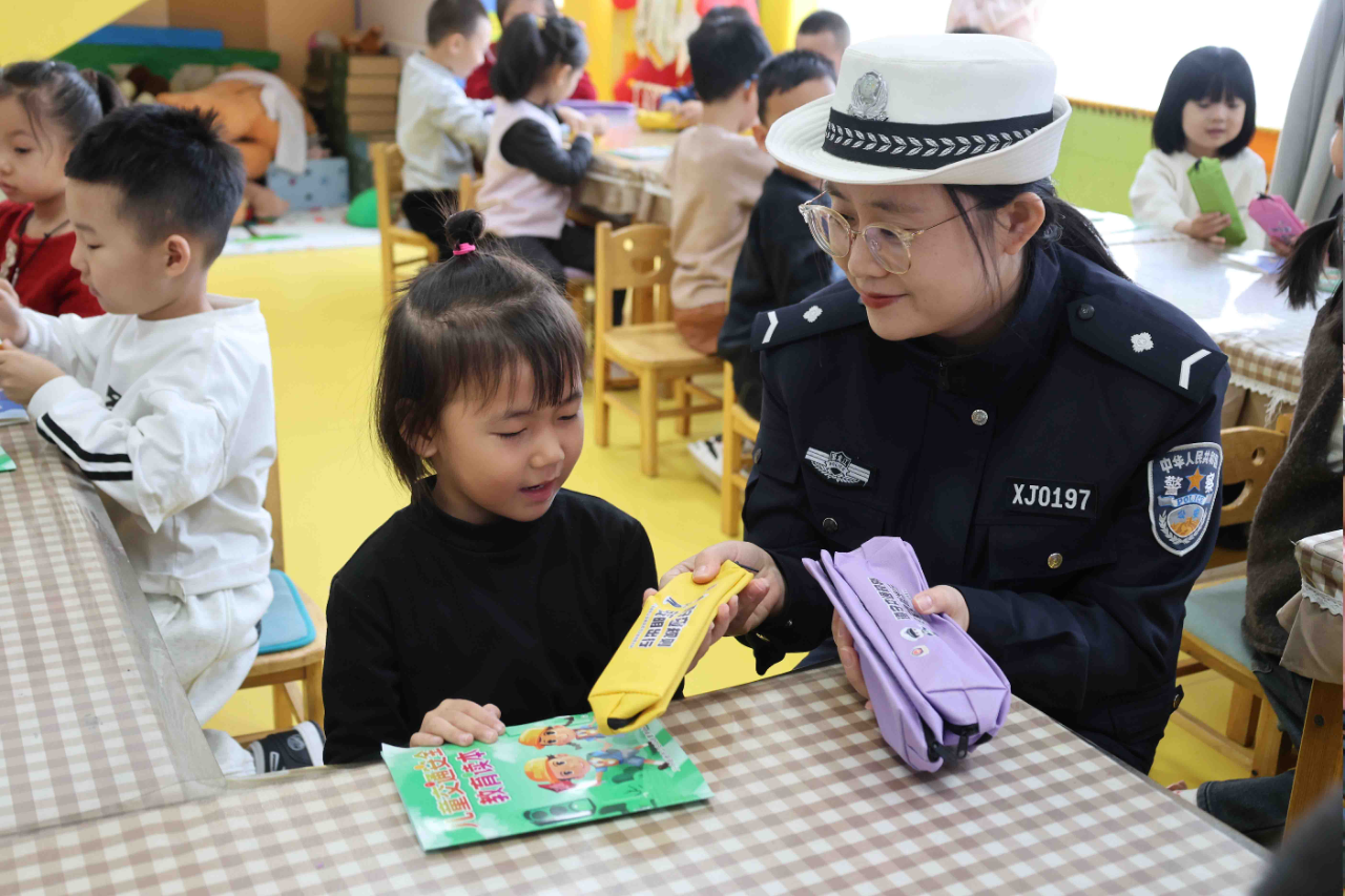活動中,民警結(jié)合幼兒認(rèn)知特點,將枯燥的交通法規(guī)轉(zhuǎn)化為生動有趣的互動形式,通過發(fā)放安全宣傳圖冊、粘貼海報、播放交通安全卡通動畫等寓教于樂的形式,用通俗易懂的語言向孩子們普及信號燈通行規(guī)則、過馬路走斑馬線及冬季出行安全知識和注意事項,進(jìn)一步提升師生的安全出行意識和守法意識。同時,持續(xù)強(qiáng)化“小手拉大手”示范引領(lǐng)作用,積極鼓勵孩子們當(dāng)起家庭“交通安全監(jiān)督員”,將活動中學(xué)到的交通安全知識傳遞給父母,提醒家長冬季出行要做到不酒駕、不超速、乘車系好安全帶等出行注意事項,時刻督促家人養(yǎng)成良好出行習(xí)慣。