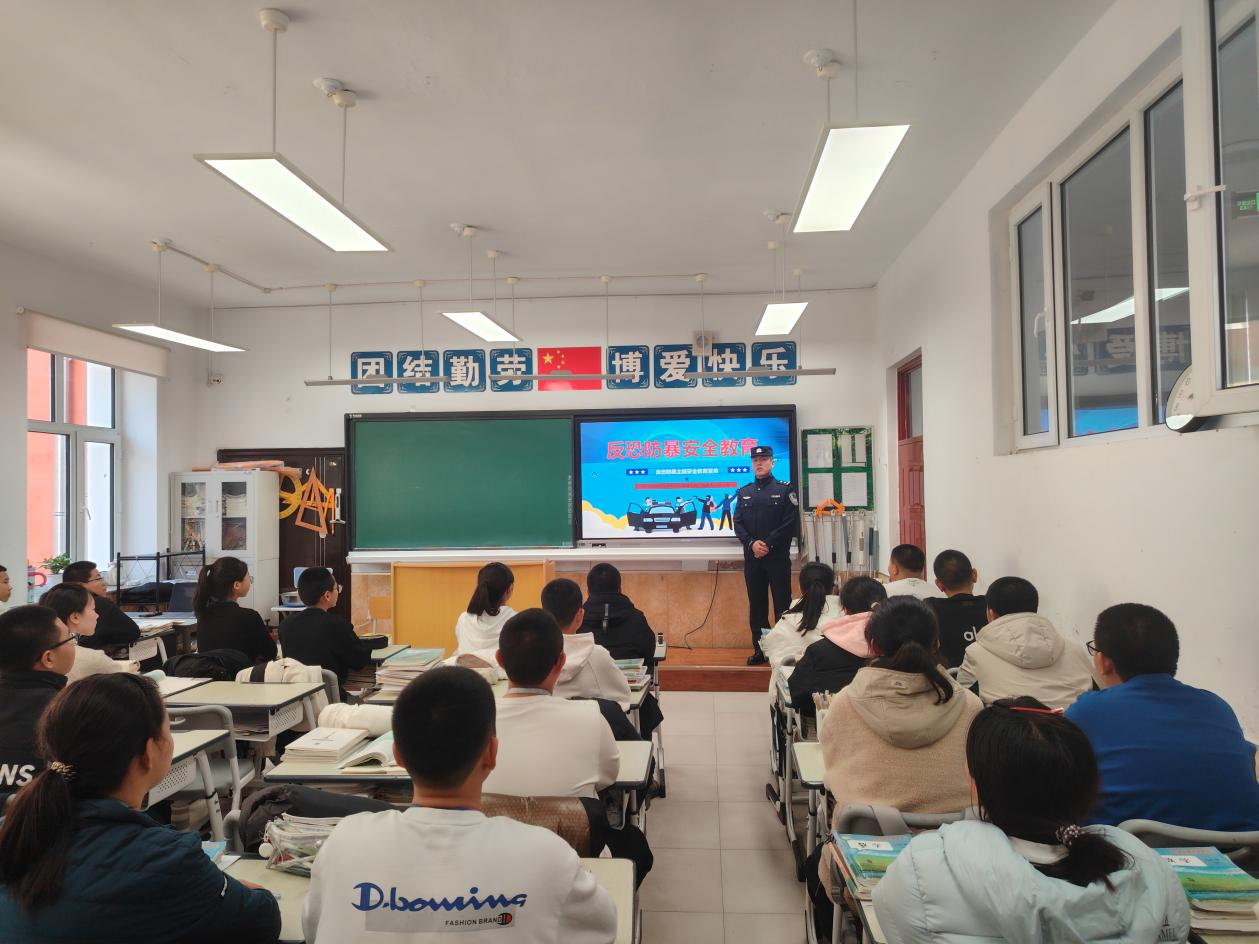 宣傳現(xiàn)場,民警結(jié)合精心制作的PPT課件,用貼近學(xué)生認知的通俗語言和真實典型案例,系統(tǒng)拆解反恐安全核心要點。從“暴恐行為的定義與危害”“校園常見潛在安全隱患”,到“可疑人員與危險物品的識別技巧”,每一頁內(nèi)容都緊扣校園實際場景,精準對接學(xué)生安全需求。針對“遭遇危險如何正確跑、躲、防”這一關(guān)鍵問題,民警通過圖文并茂的方式細致講解應(yīng)急處置流程,其間穿插互動提問,同學(xué)們踴躍舉手應(yīng)答,課堂氛圍熱烈活躍,有效加深了對安全知識點的記憶與理解。