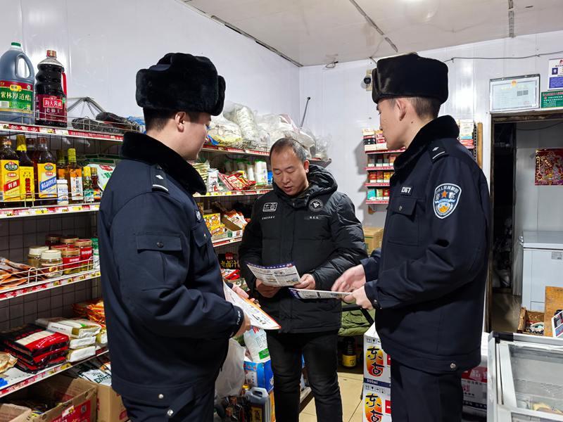 在市場(chǎng)攤位前、商戶門店內(nèi),民警逐一走訪經(jīng)營(yíng)戶,一方面引導(dǎo)商戶規(guī)范經(jīng)營(yíng),拒絕參與養(yǎng)老詐騙相關(guān)違法活動(dòng);另一方面鼓勵(lì)商戶發(fā)揮“探頭”作用,發(fā)現(xiàn)可疑詐騙線索及時(shí)向公安機(jī)關(guān)舉報(bào)。