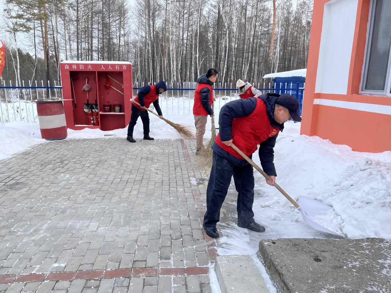 在清掃現場,服務隊隊長現場分工,志愿者們手持鐵鍬、雪推等工具,重點清理主干道與作業(yè)通道。大家配合默契,鏟雪、推雪、掃雪有序進行。盡管天氣寒冷,但志愿者們干勁十足。經過連續(xù)奮戰(zhàn),各管護站的主要道路、院落和通道積雪被徹底清除,出行安全得到保障。