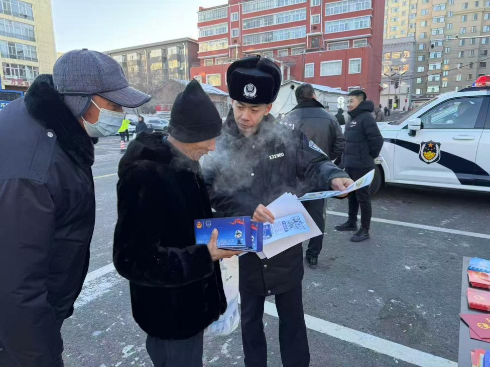 冰天雪地中,民輔警搓著凍紅的雙手仍微笑宣講,逐份發(fā)放《中華人民共和國憲法》讀本、法治折頁與防范指南?!斑@么冷的天還出來送法律知識(shí),這些知識(shí)很實(shí)用,拿回去也讓家里人學(xué)學(xué)”,市民李大爺?shù)母锌莱隽巳罕娦穆?,現(xiàn)場(chǎng)咨詢、聆聽的群眾絡(luò)繹不絕,秩序井然。