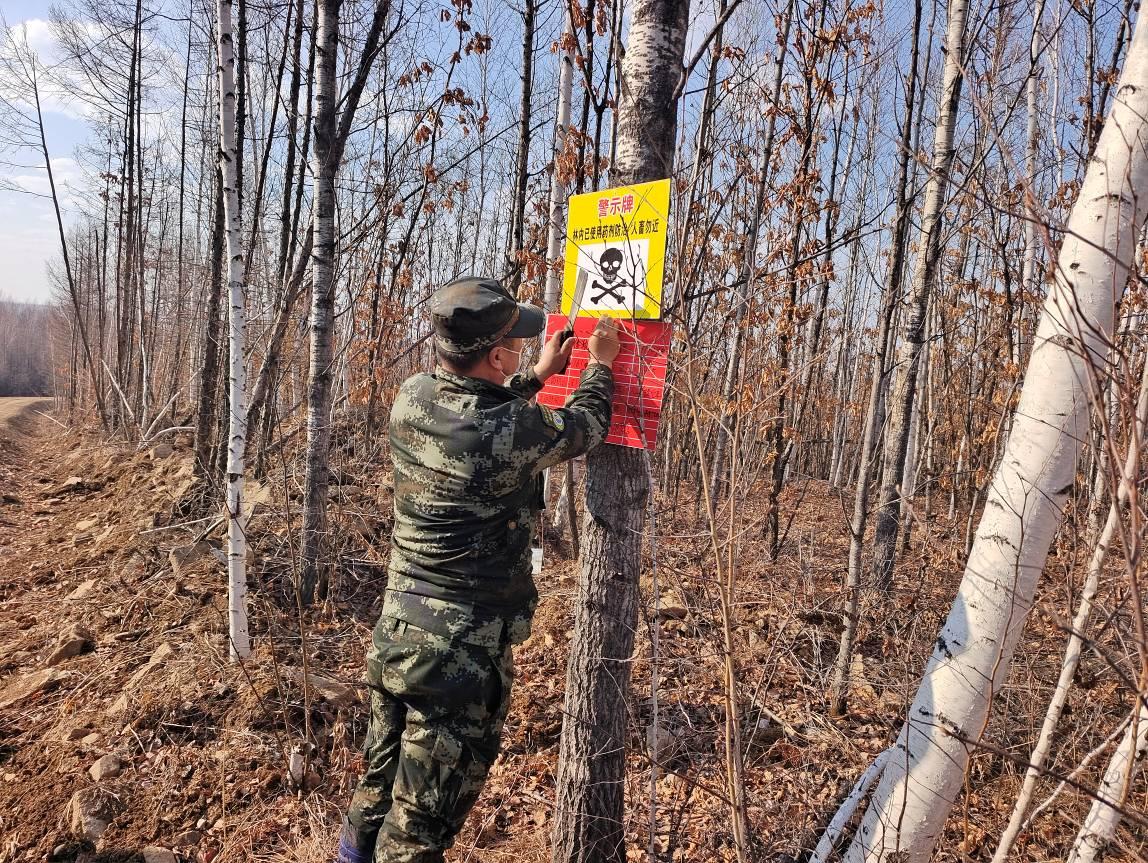 林場(chǎng)工作人員在設(shè)置警示標(biāo)牌(張春義 攝)