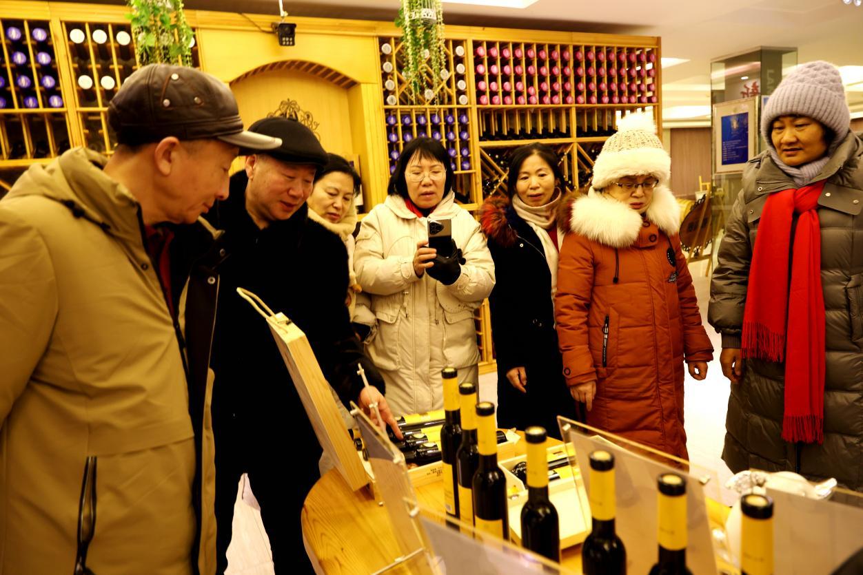 黑龍江省詩詞協(xié)會采風(fēng)團成員在北極冰藍莓酒莊了解酒文化和酒品(王力 攝)