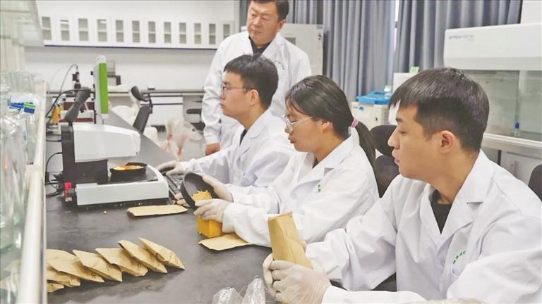 在國家現(xiàn)代農(nóng)業(yè)產(chǎn)業(yè)園的實驗室,來自東北農(nóng)業(yè)大學(xué)的研究生正在對大豆種子進(jìn)行電腦數(shù)粒、離心分析密度等工作,為選育出高產(chǎn)、優(yōu)質(zhì)、多抗的專用大豆品種提供基礎(chǔ)數(shù)據(jù)支撐。