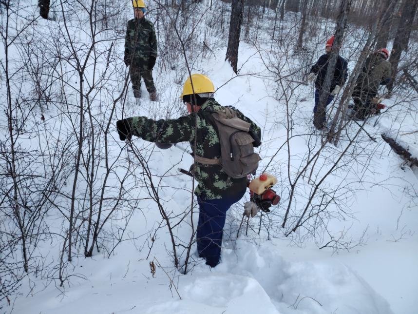 規(guī)范操作不松懈,筑牢安全“防護(hù)墻”。在各營林作業(yè)現(xiàn)場,寒風(fēng)凜冽卻擋不住職工們的工作熱情。大家嚴(yán)格遵守冬季營林作業(yè)規(guī)程,統(tǒng)一佩戴安全帽穿梭在林間,有條不紊地開展林木修枝、病腐木清理、林地?fù)嵊裙ぷ鳌S弯徥謬?yán)格執(zhí)行“先檢查、再啟動、穩(wěn)操作”的流程,精準(zhǔn)把控作業(yè)角度;撫育隊(duì)員踩著厚雪,手持工具對林間枯死木、被壓木及對目的樹種生長存在影響的進(jìn)行有序清理、歸堆。從器械檢查到流程落實(shí),每一個(gè)環(huán)節(jié)都嚴(yán)謹(jǐn)規(guī)范,安全帽上的反光條在皚皚白雪中格外醒目,成為林海間一道守護(hù)安全的風(fēng)景線。