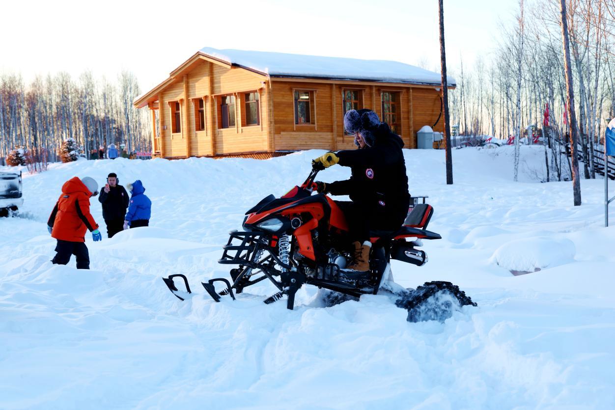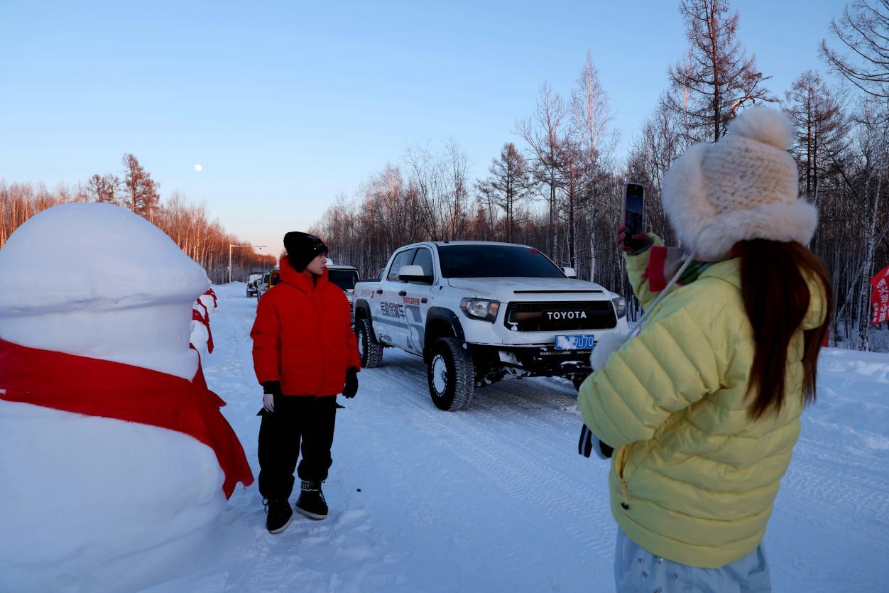 當(dāng)日中午,隨著車隊(duì)緩緩駛?cè)氡睒O島景區(qū)南門,美麗的雪地廣場(chǎng)瞬間被熱情點(diǎn)燃。游客們紛紛走下車,不顧零下數(shù)十度的嚴(yán)寒,或在松軟的雪地上玩起汽車漂移,或與雪人合影留念,或揚(yáng)起漫天雪花享受雪的輕撫,汽車馬達(dá)的轟鳴與歡聲笑語(yǔ)交織回蕩,讓這片銀裝素裹的天地化作歡樂(lè)的海洋。