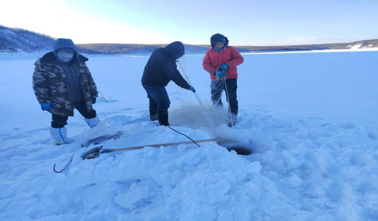 為確保首次冬捕成功,組建捕撈團(tuán)隊,邀請經(jīng)驗豐富的漁工指導(dǎo),從漁網(wǎng)鋪設(shè)、冰面鑿洞到捕撈作業(yè),每一個環(huán)節(jié)都精心部署、規(guī)范操作,最終實現(xiàn)首網(wǎng)豐產(chǎn)的喜人成果。