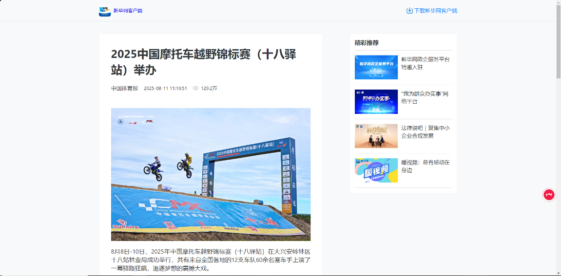 ——主題宣傳聲勢強(qiáng)勁,上央媒、亮品牌。聚焦生態(tài)建設(shè)、產(chǎn)業(yè)發(fā)展、先進(jìn)典型等,深挖工作亮點(diǎn),全媒體發(fā)稿量超3800篇,其中國家級媒體310余篇、省級媒體270余篇。《2025中國摩托車越野錦標(biāo)賽舉辦》《小熊下樹!哎喲喲下得挺快》等作品登上央視新聞、新華社、光明網(wǎng)、學(xué)習(xí)強(qiáng)國、中國綠色時報等國家級平臺;2025中國摩托車越野錦標(biāo)賽、文藝演出等活動通過新華社現(xiàn)場云等平臺直播,總點(diǎn)擊量超300萬次,“十八驛站”知名度與美譽(yù)度顯著提升。