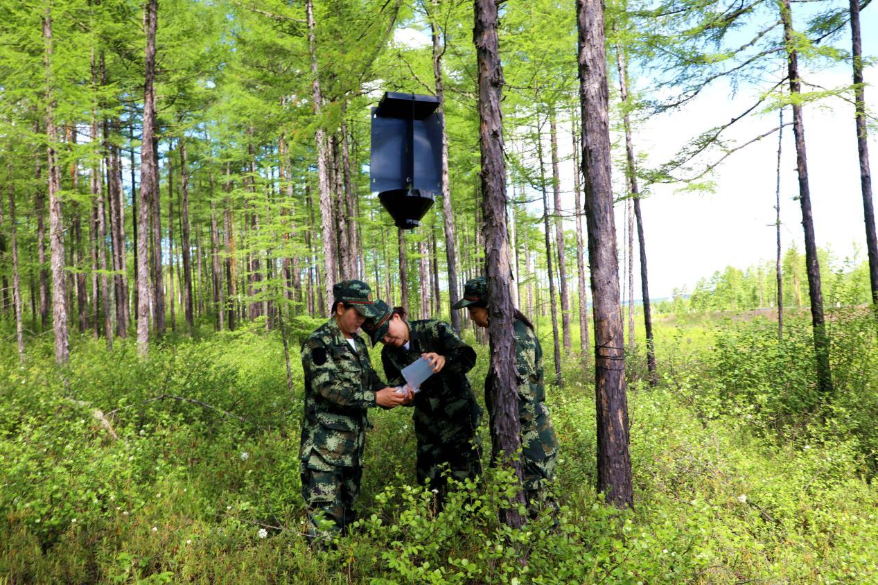 阿木爾林業(yè)局林防站工作人員在監(jiān)測(cè)樣地收集小蠹蟲(chóng)(王力 攝)